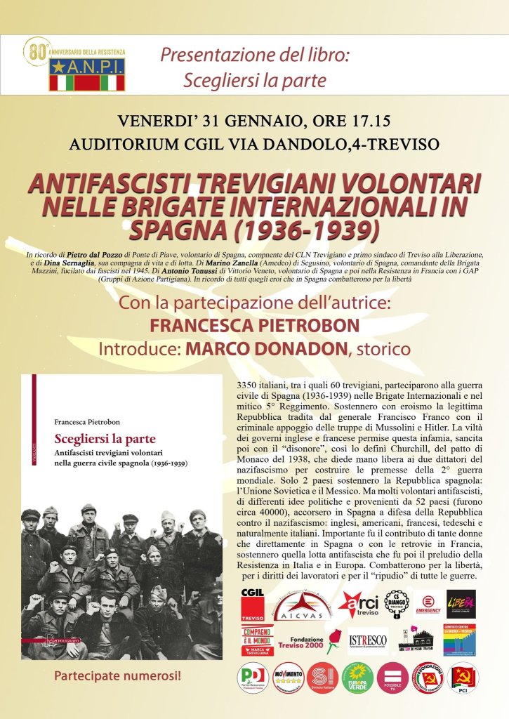 Partecipiamo con ANPI Prov. Treviso ed altre organizzazioni alla presentazione dello studio sul ruolo degli antifascisti trevigiani alla Guerra di Spagna tra il 1936 ed il 1939.